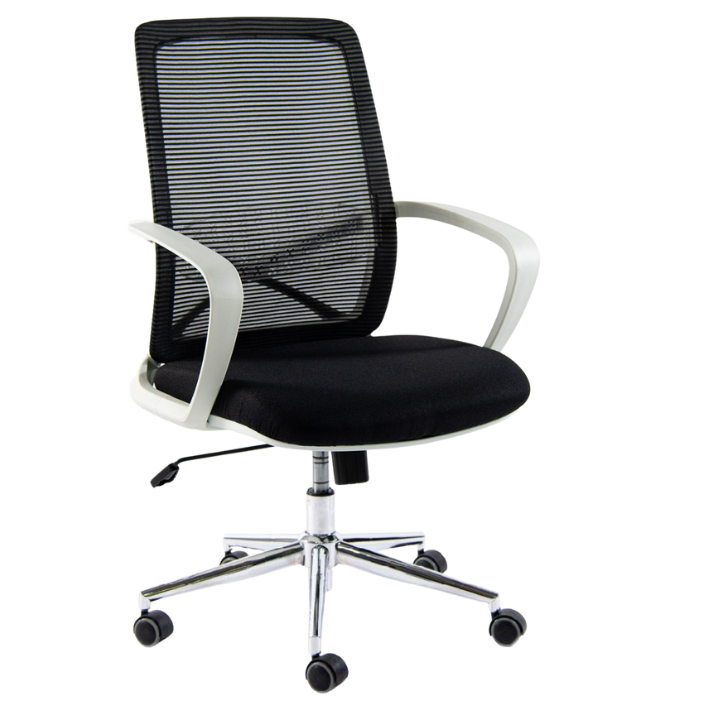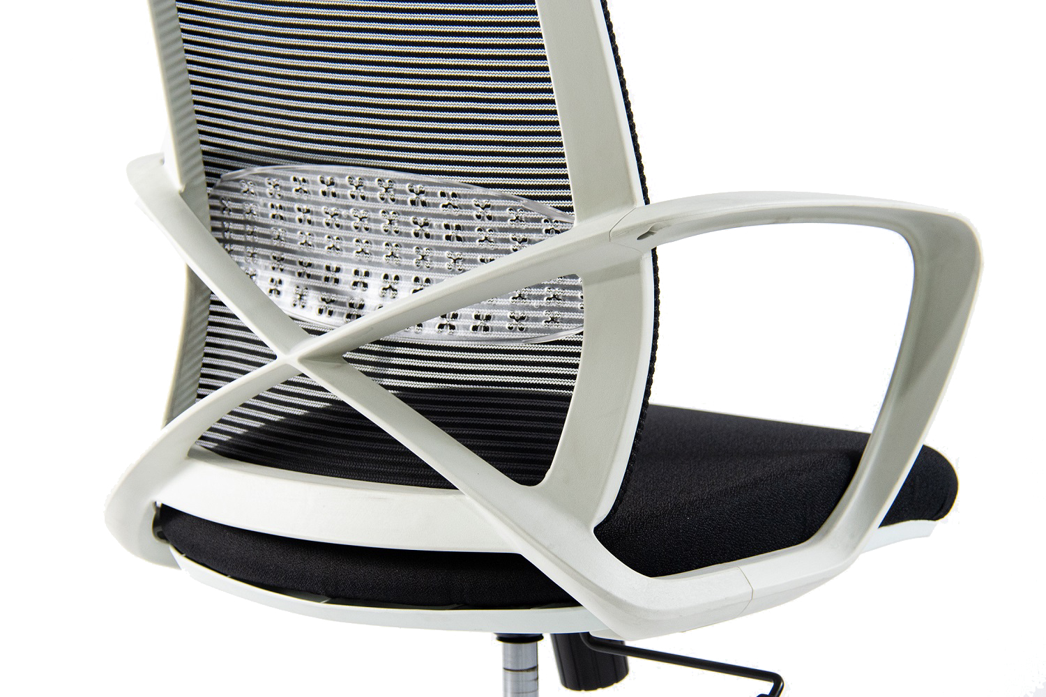 - Respaldo de Nylon color blanco, revestido con tela de red mesh lineal negra.
